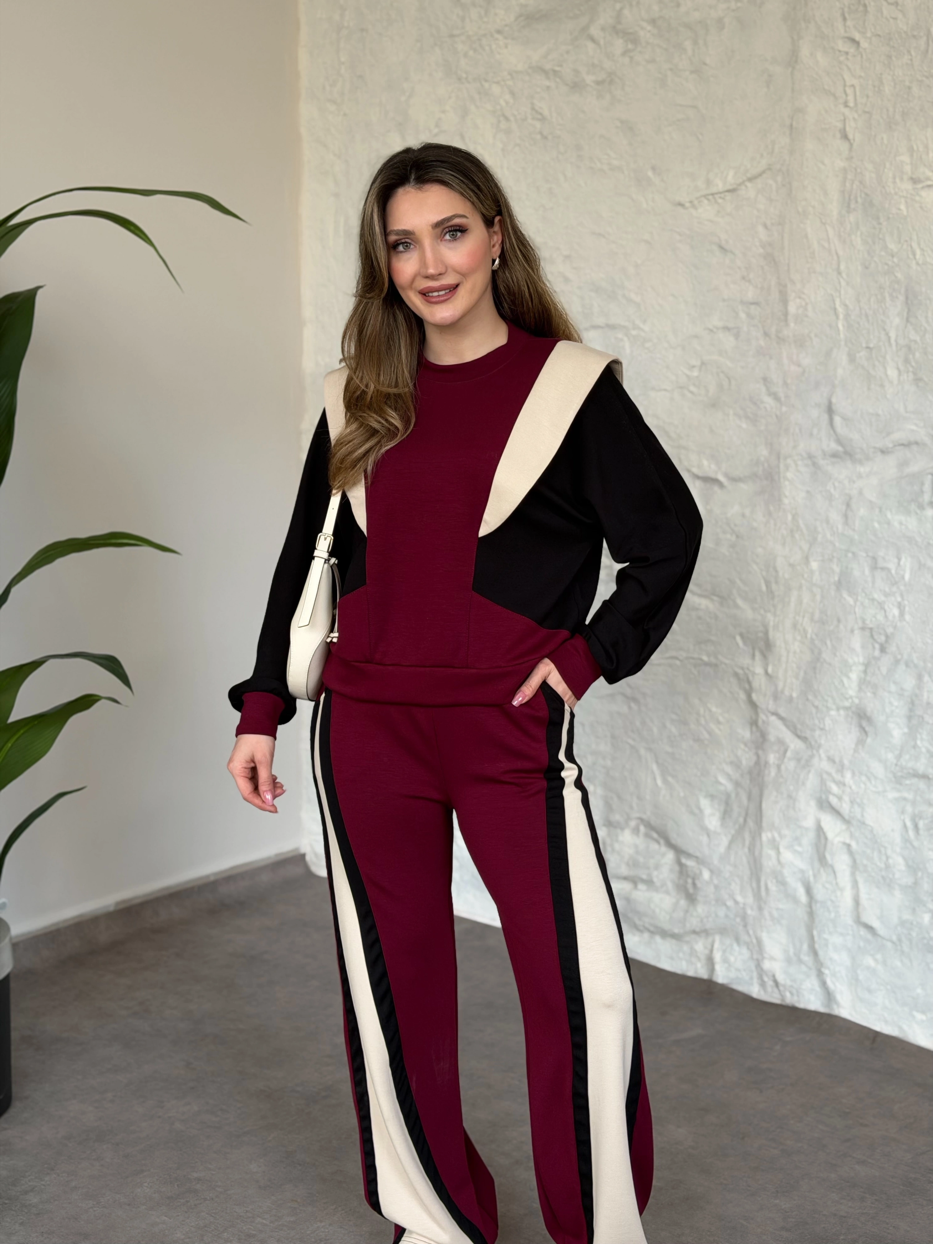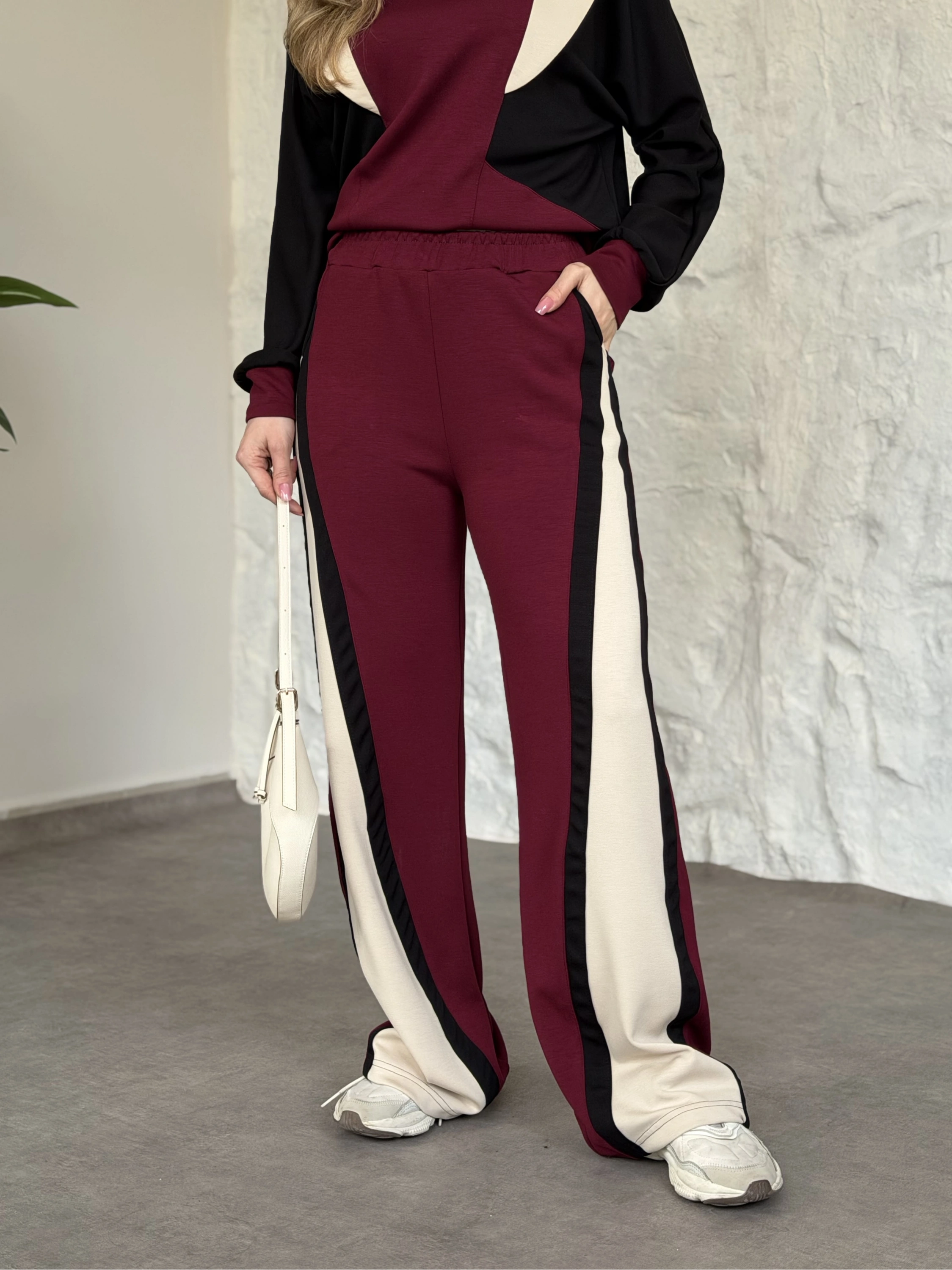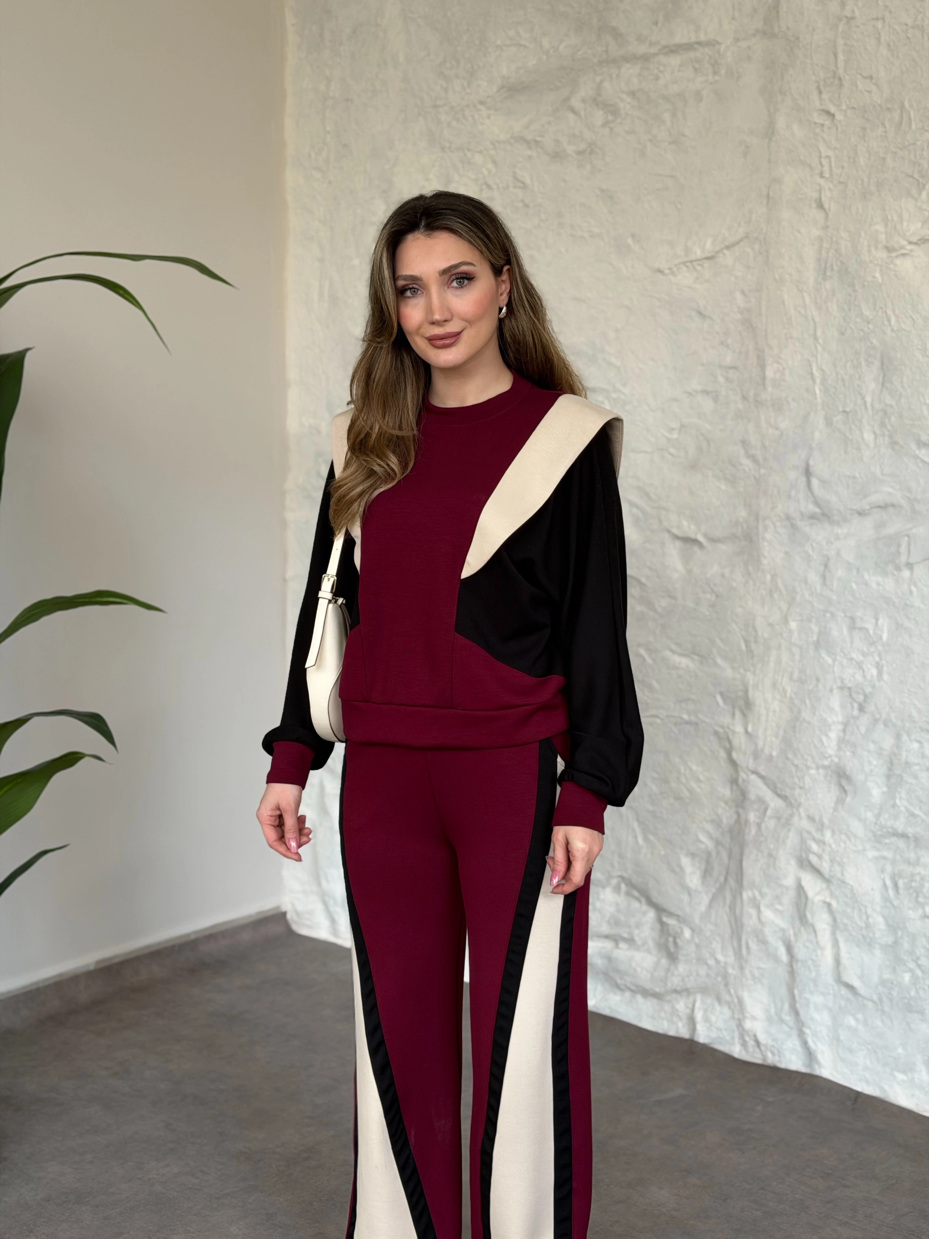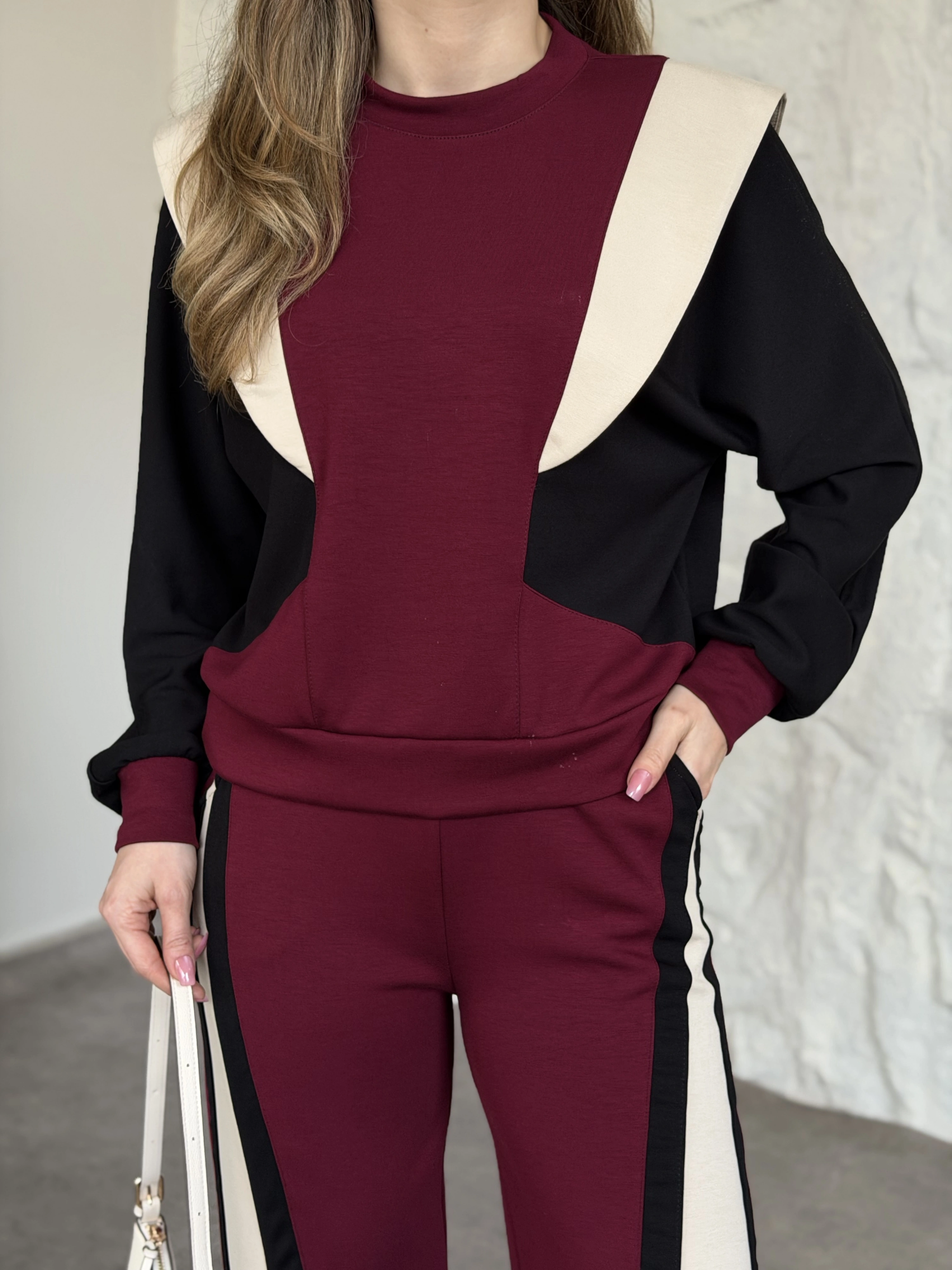 Vatkalı 3 renk eşofman takımı bordo