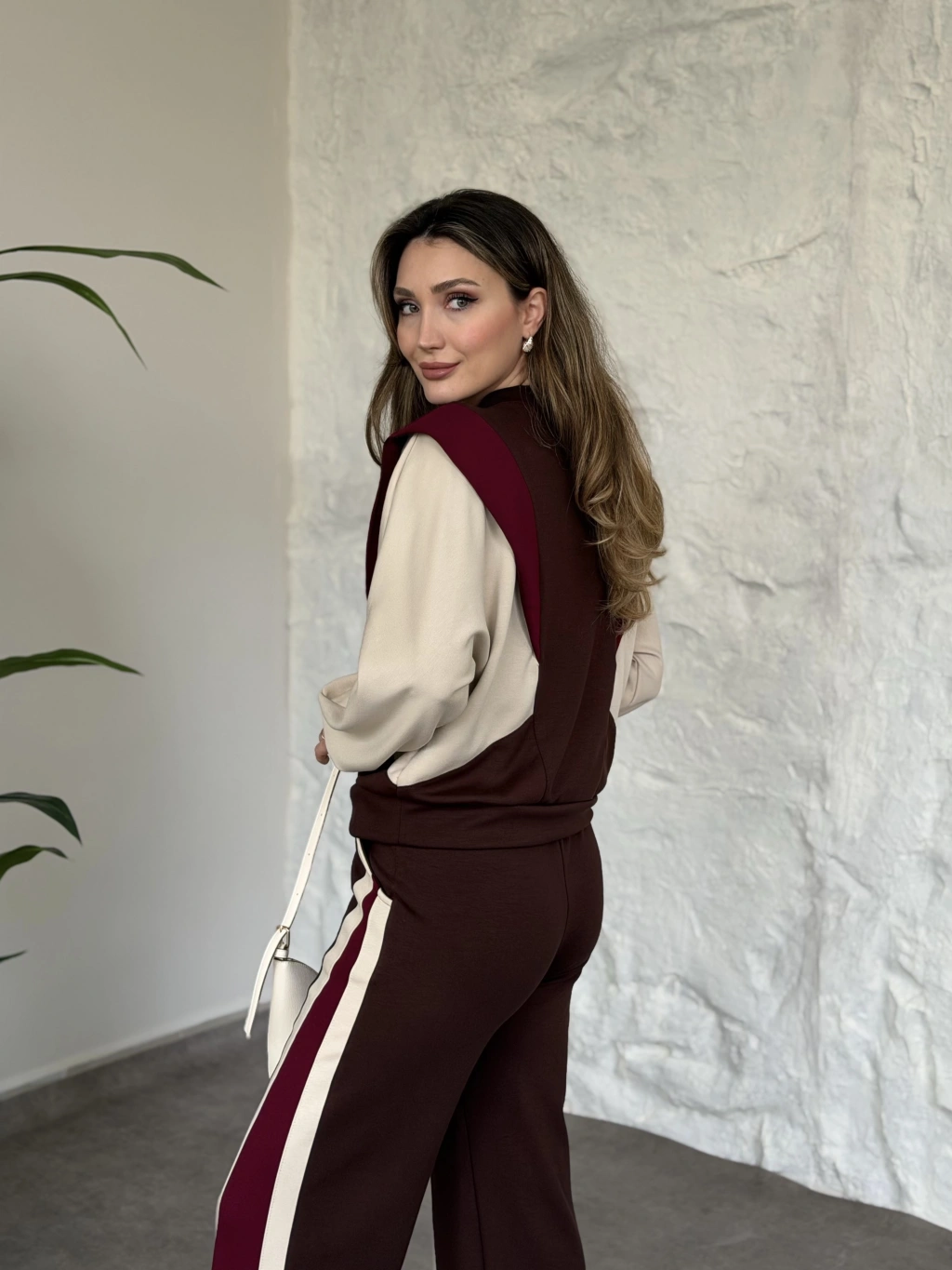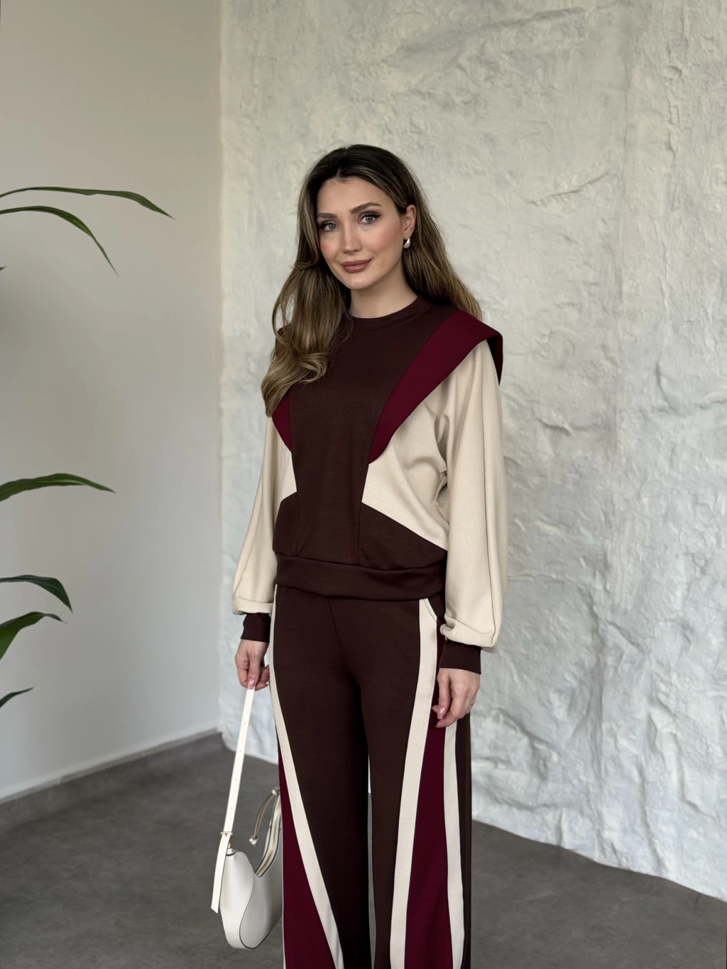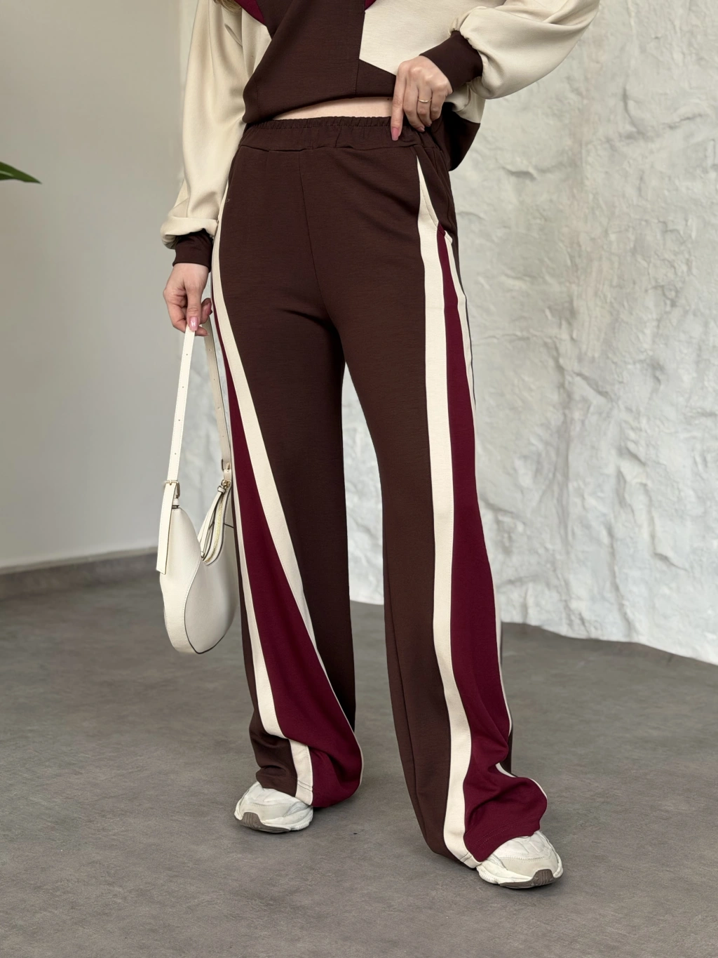 Premium yandan bağlama detaylı double kumaş takım kahve