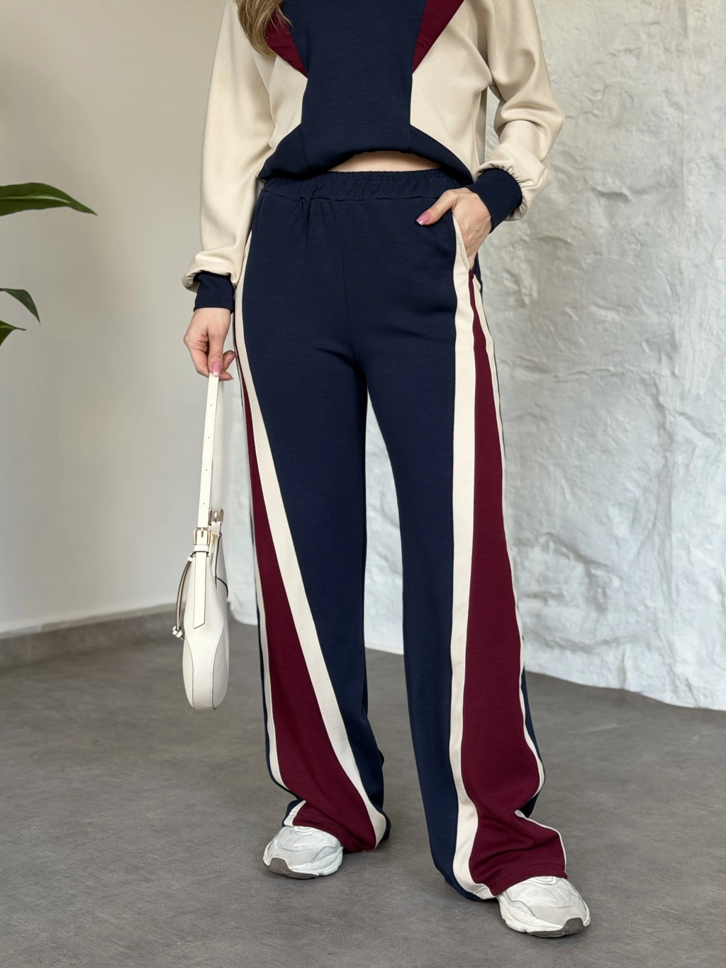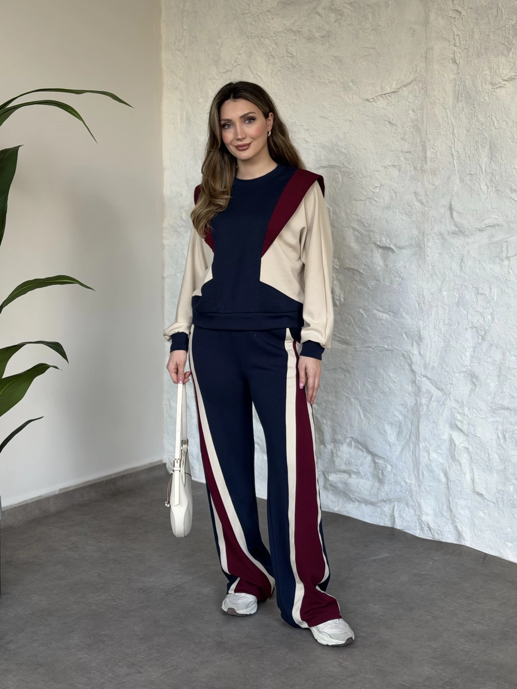 Premium yandan bağlama detaylı double kumaş takım lacivert