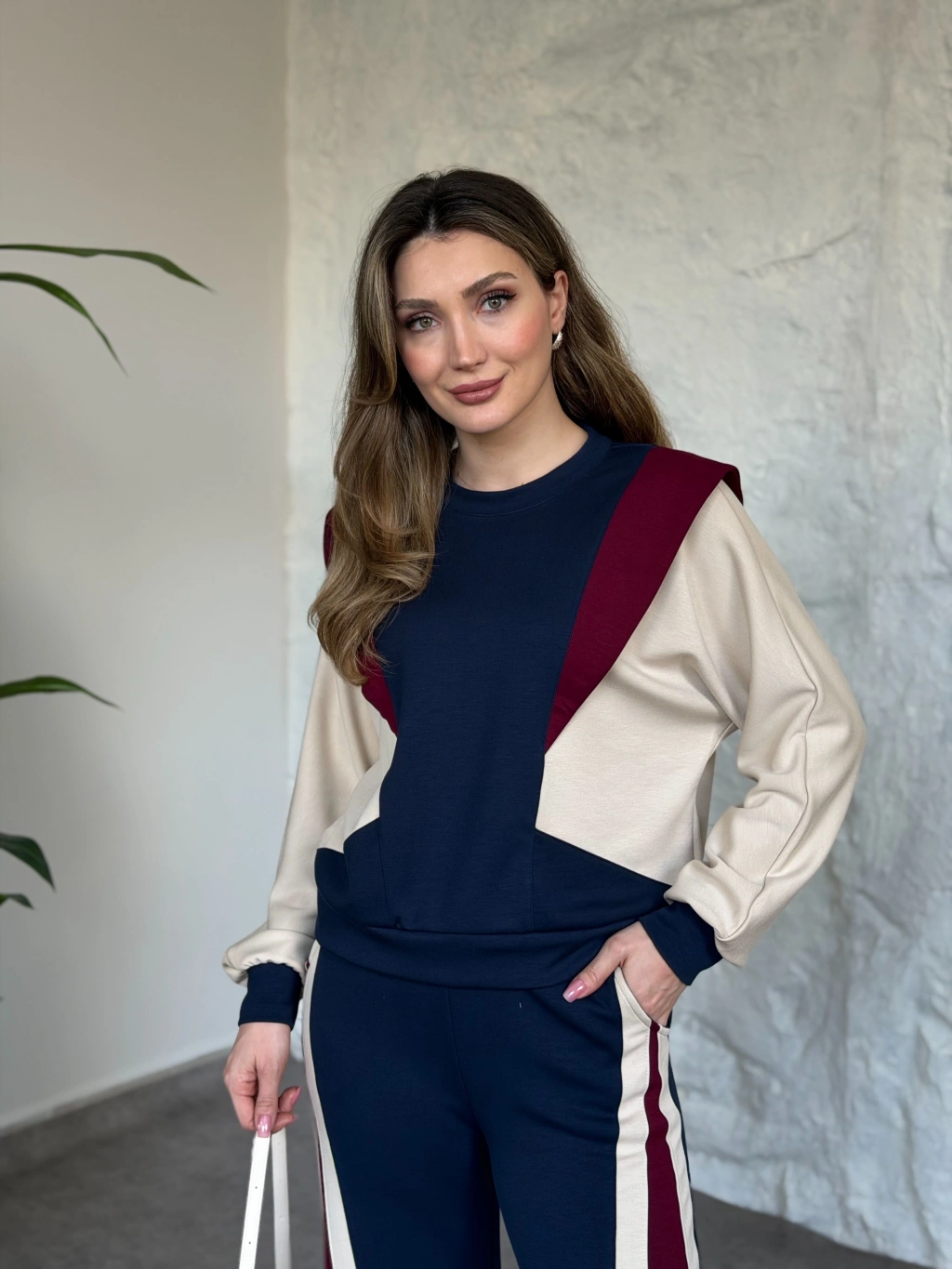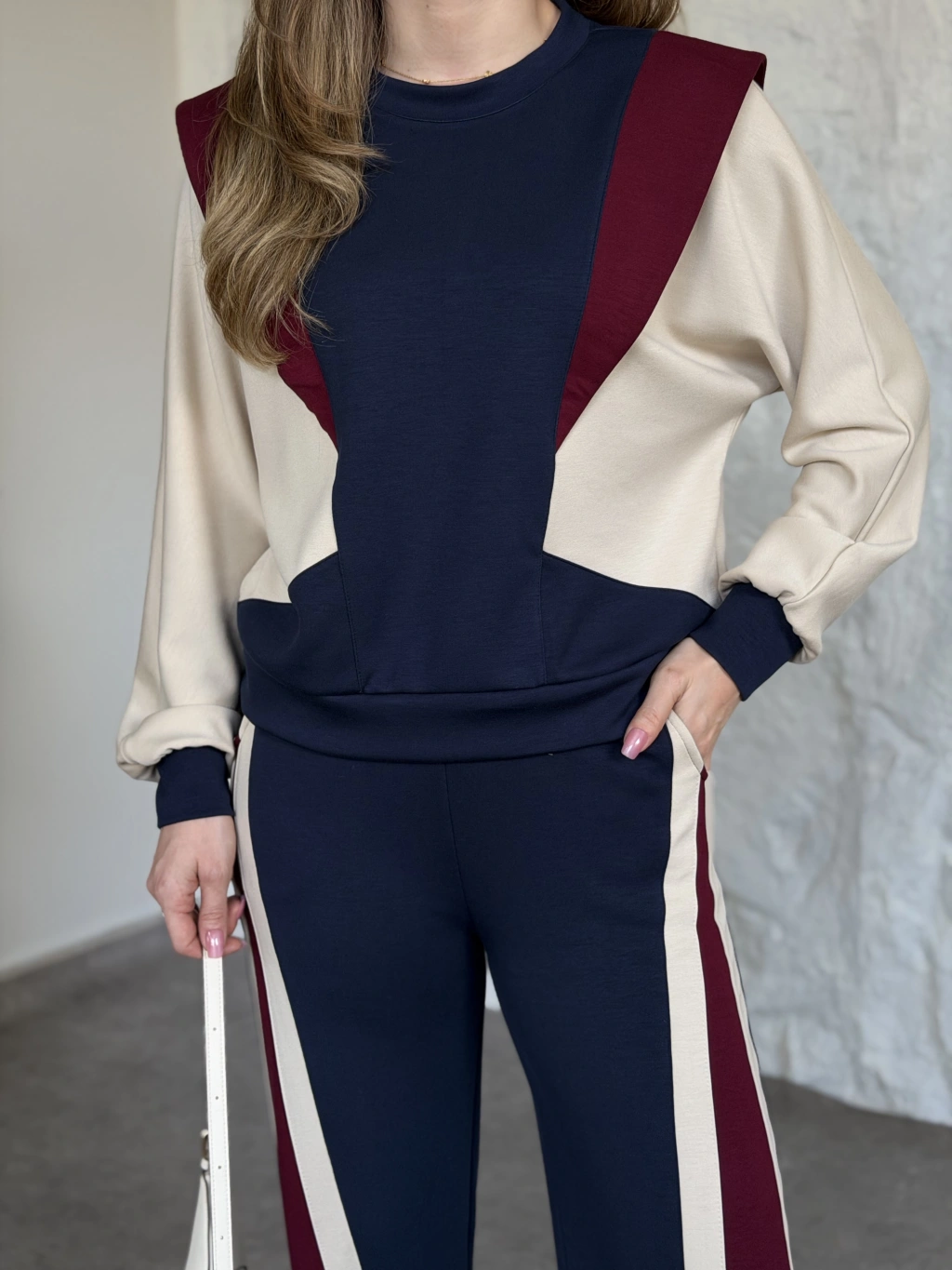 Premium yandan bağlama detaylı double kumaş takım mürdüm