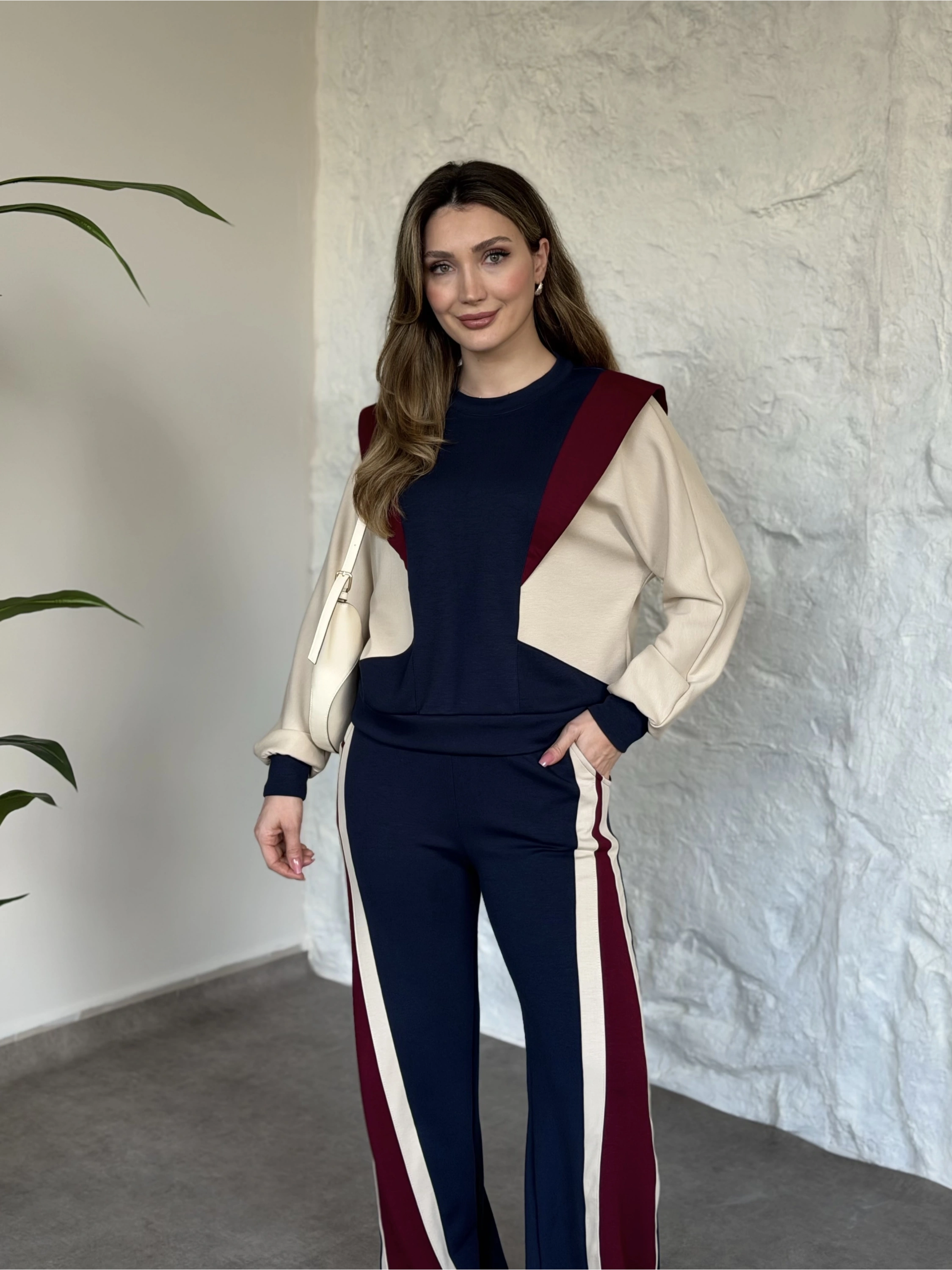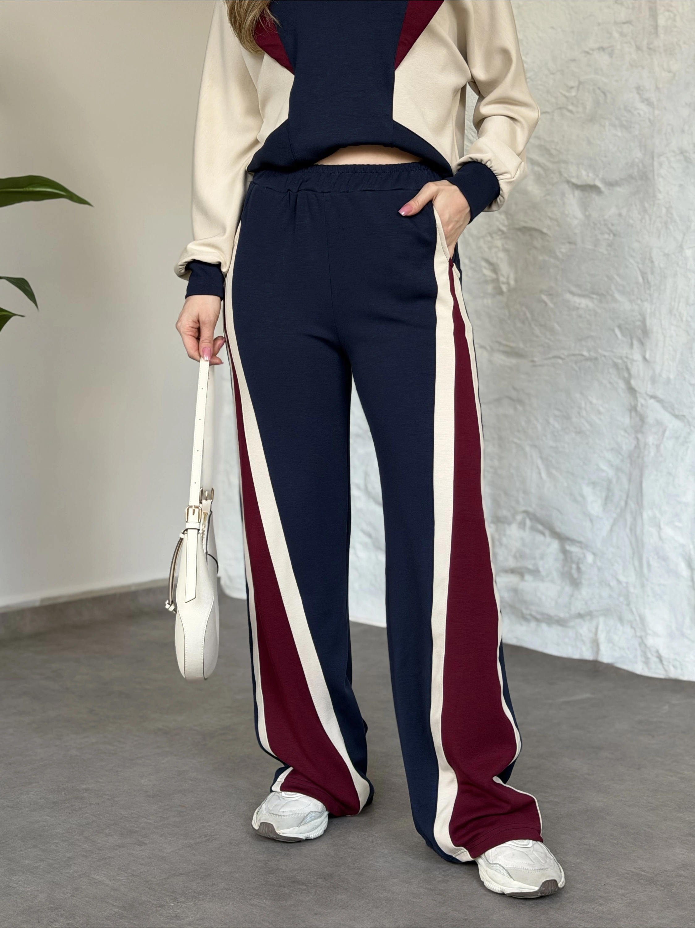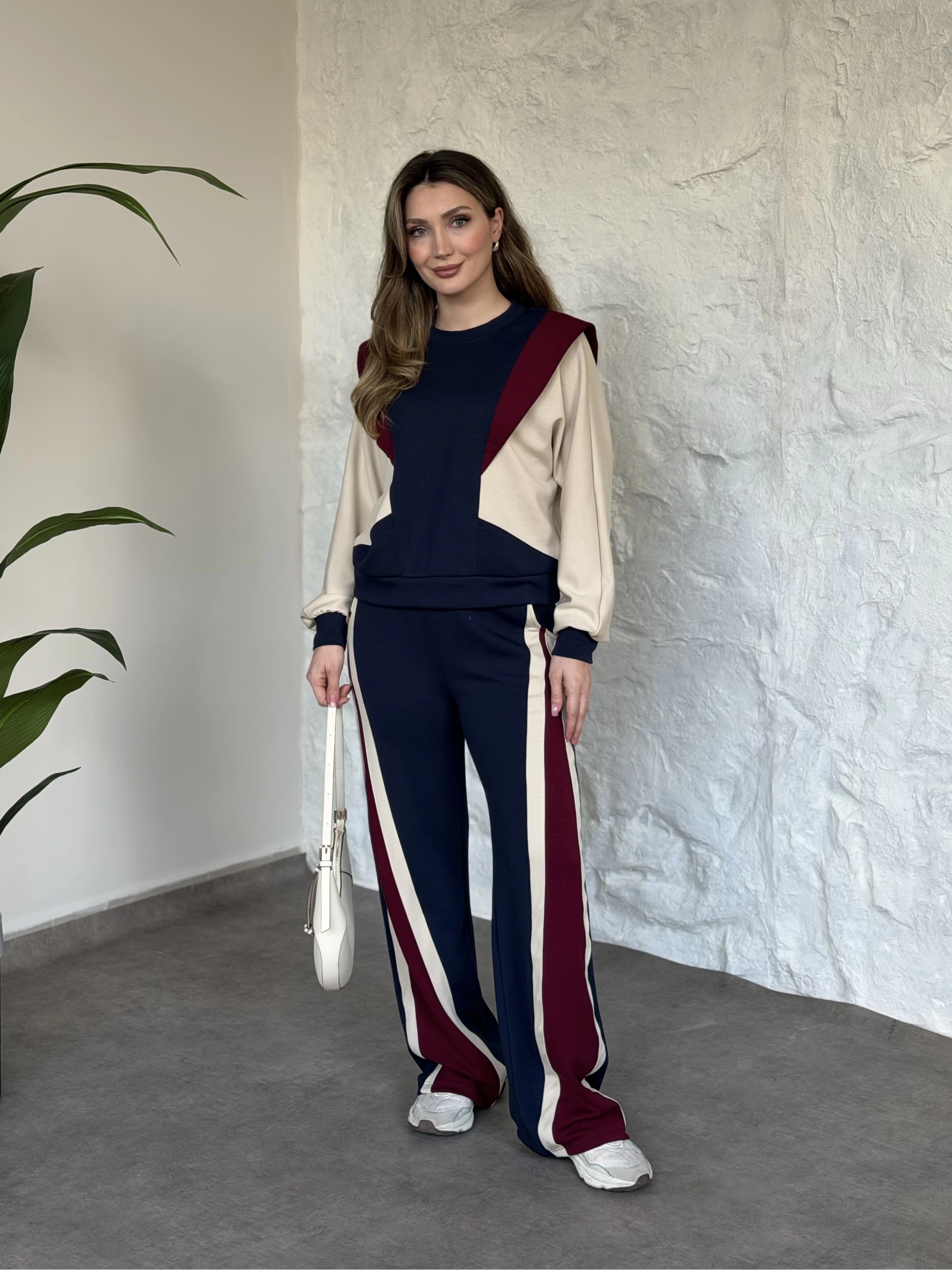 Garnili paraşüt kumaş detaylı ikili takım lacivert