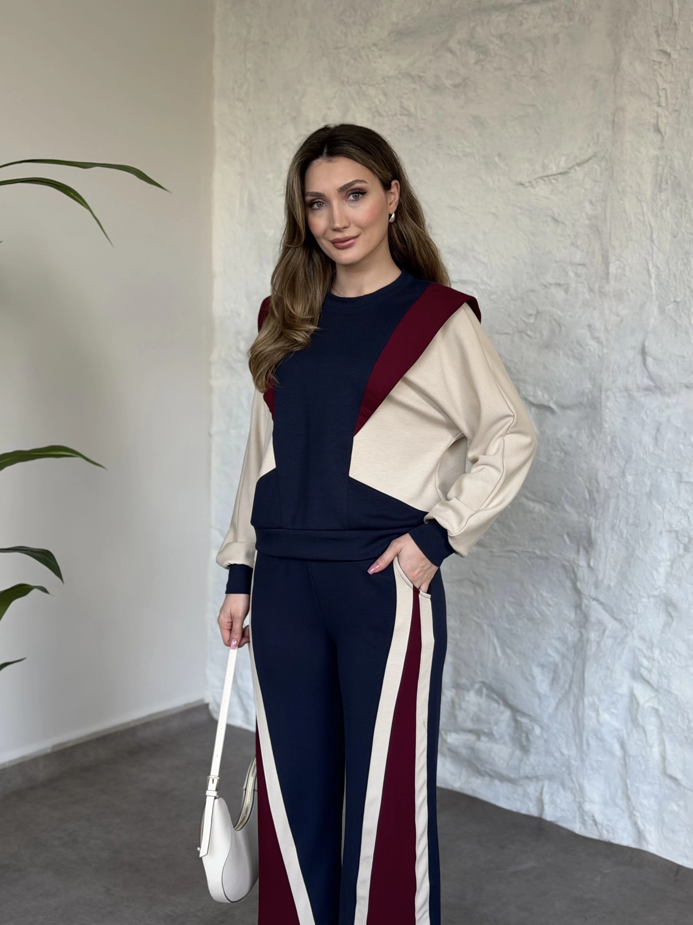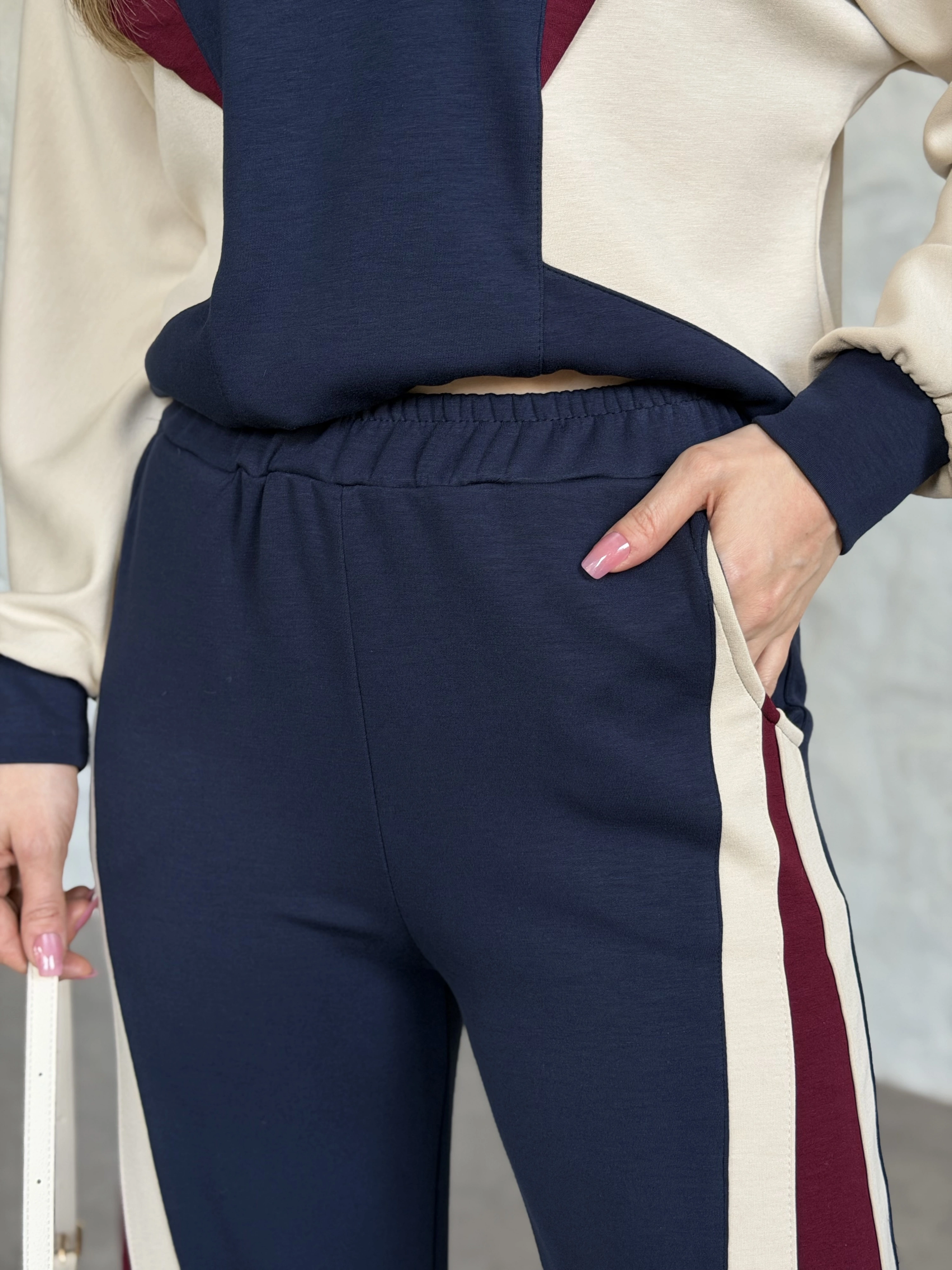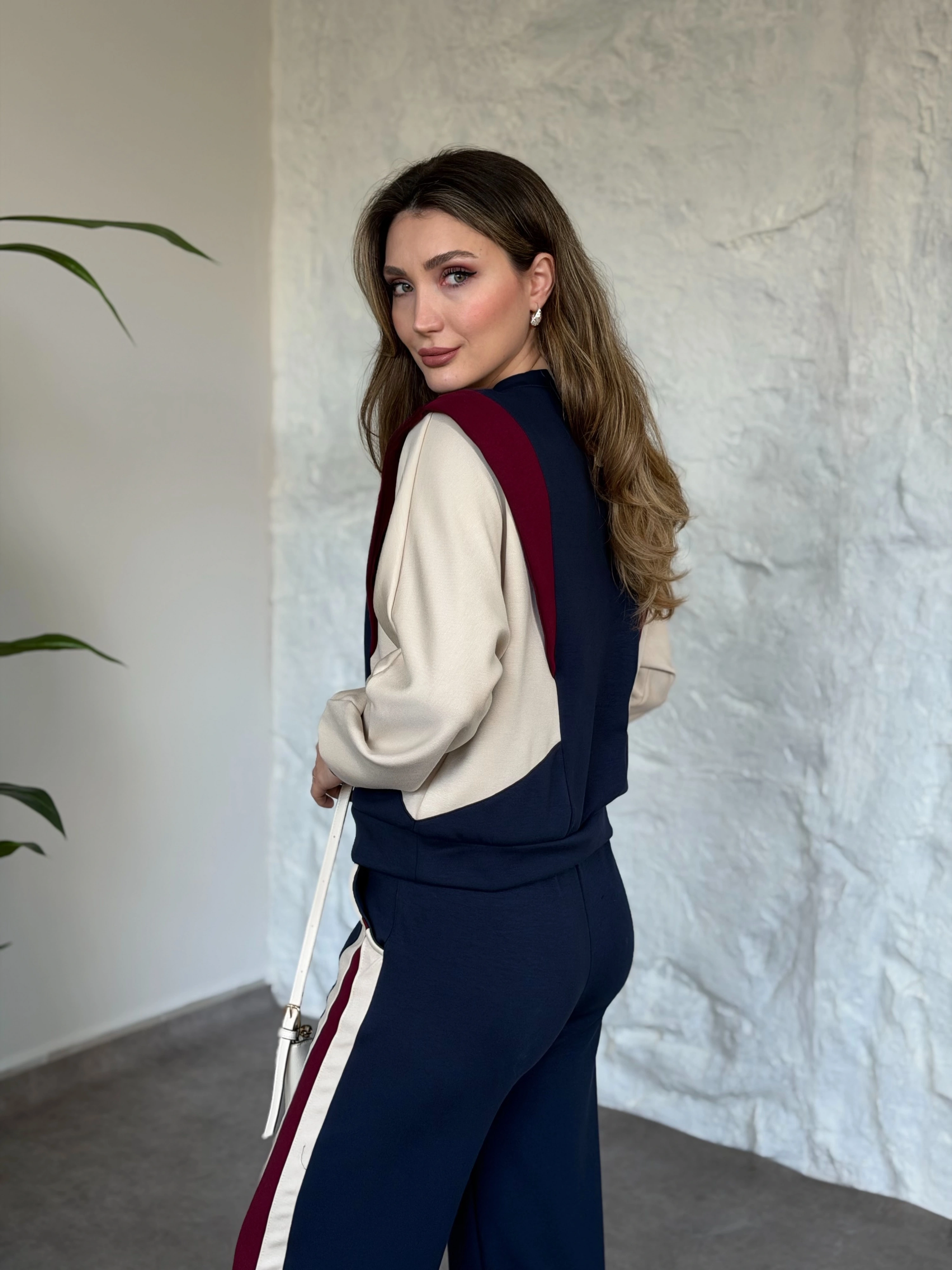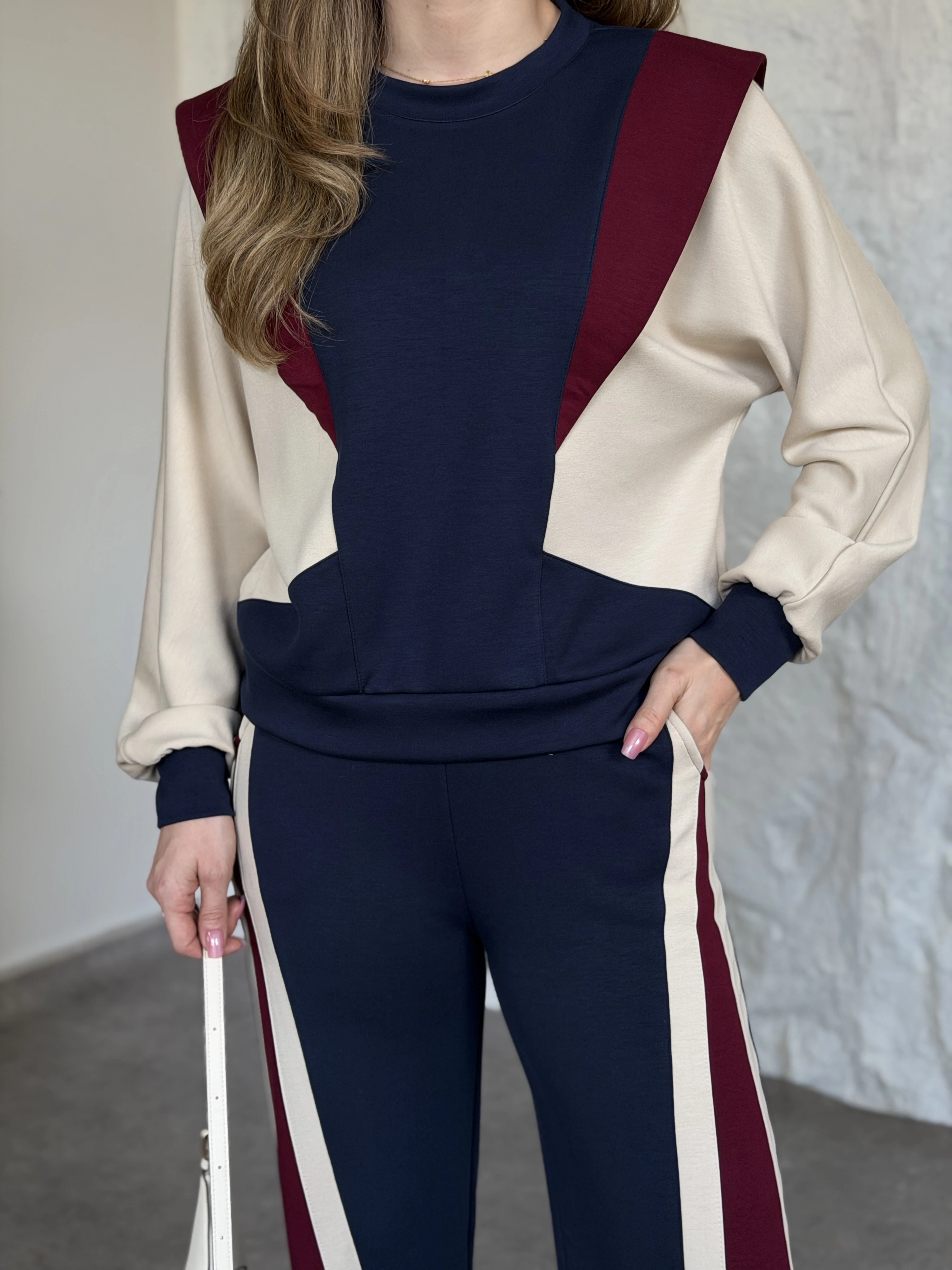 Garnili paraşüt kumaş detaylı ikili takım lacivert