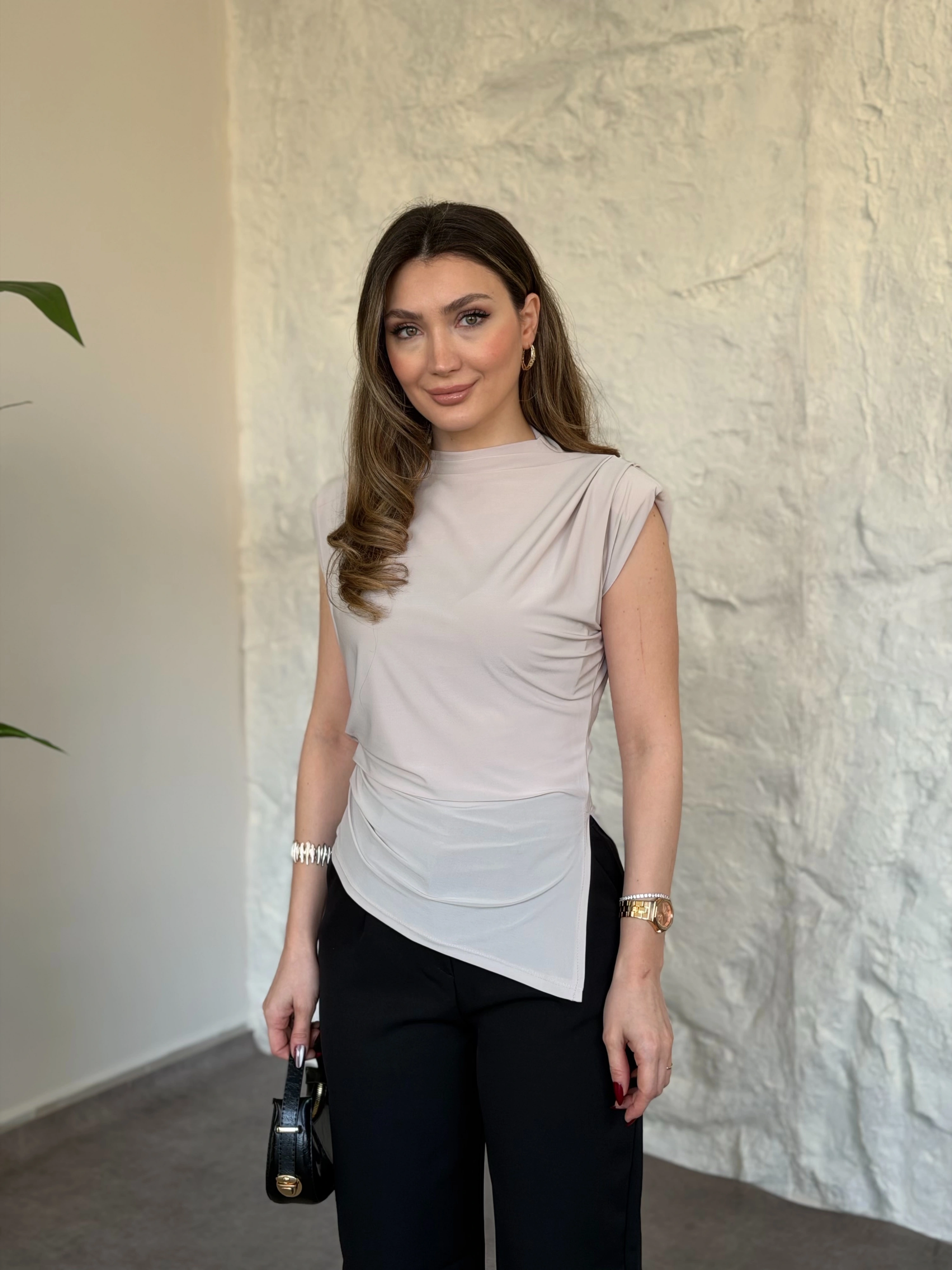 Premium kalite Torino kumaş beli kemerli trenç ceket bej