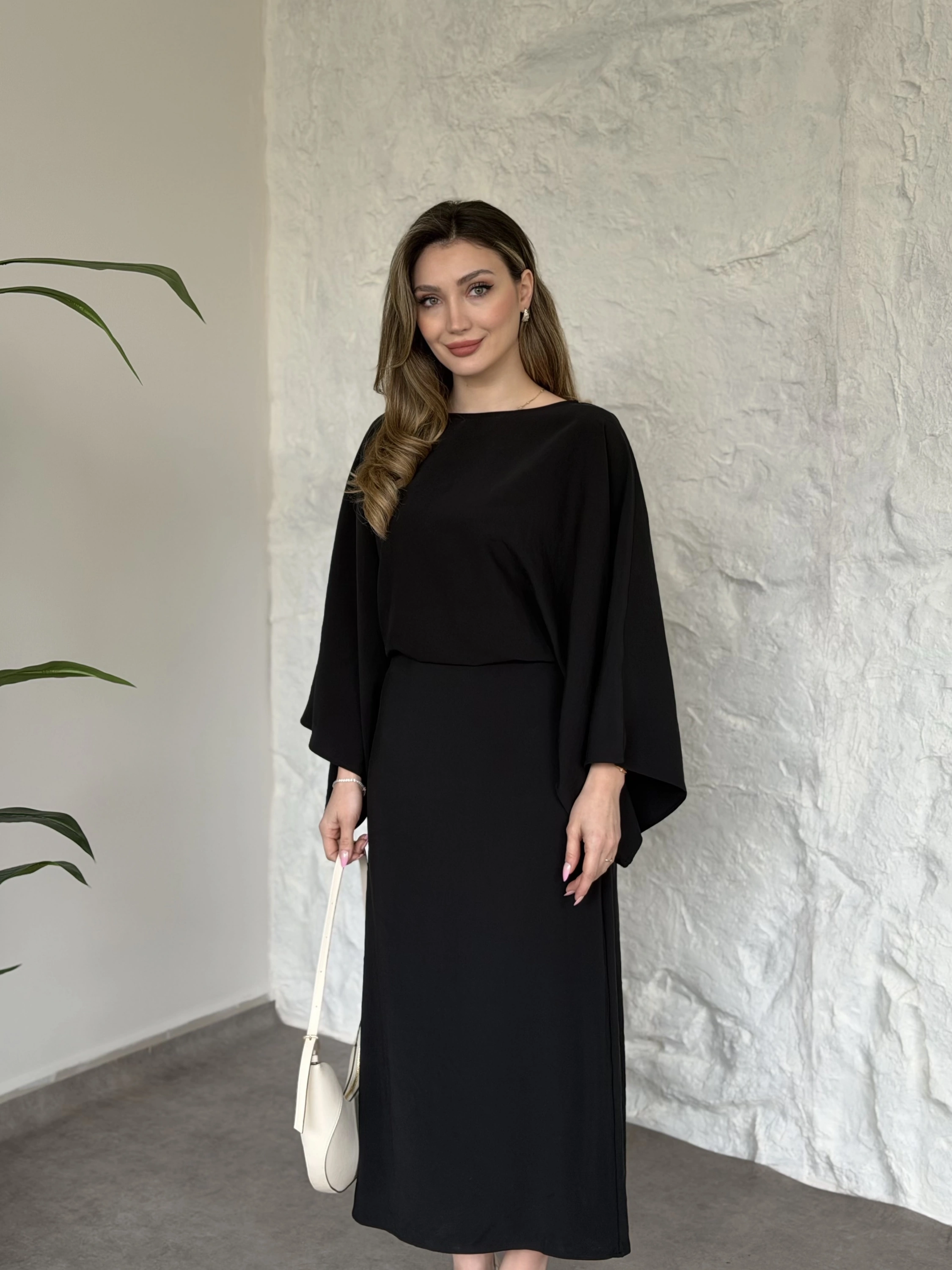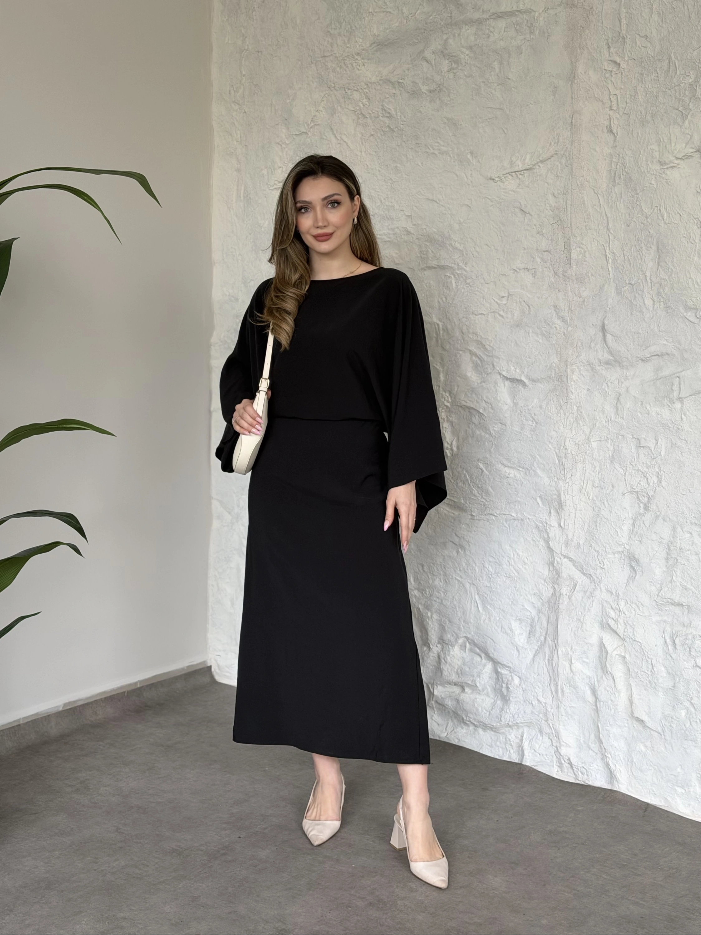 Yarasa kol maxi elbise siyah