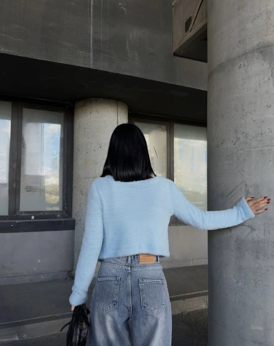 yumuşak tüylü askılı crop ve hırka bebek mavi