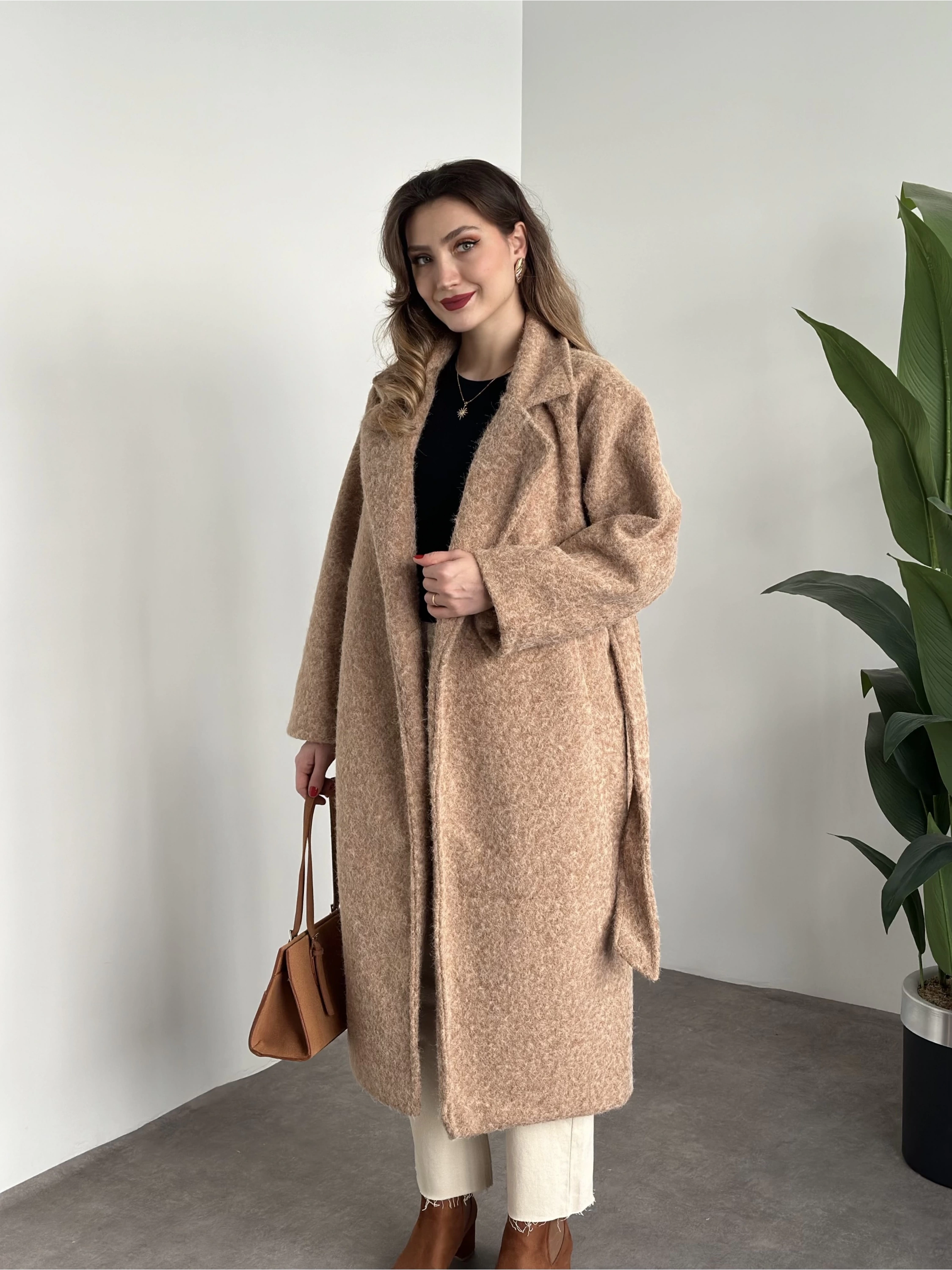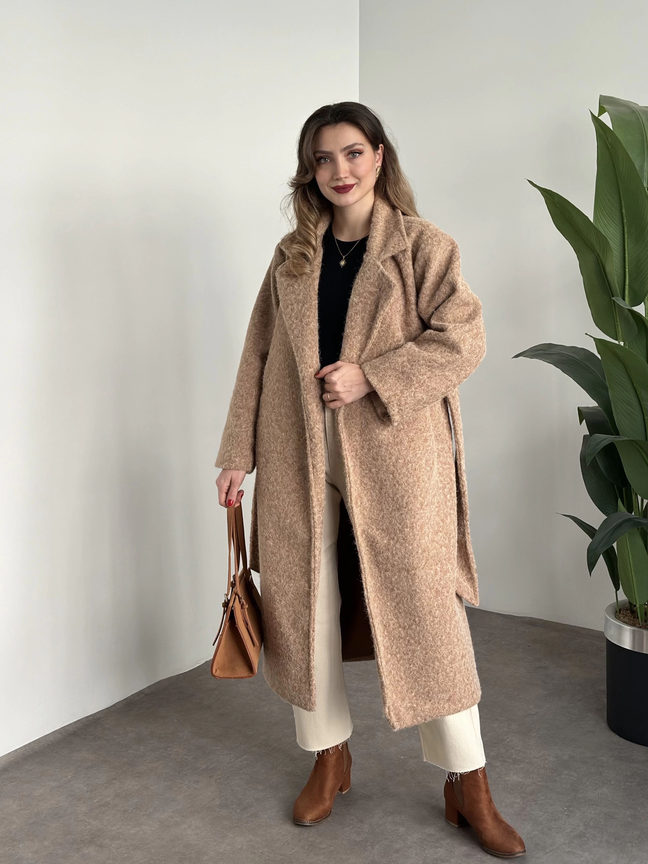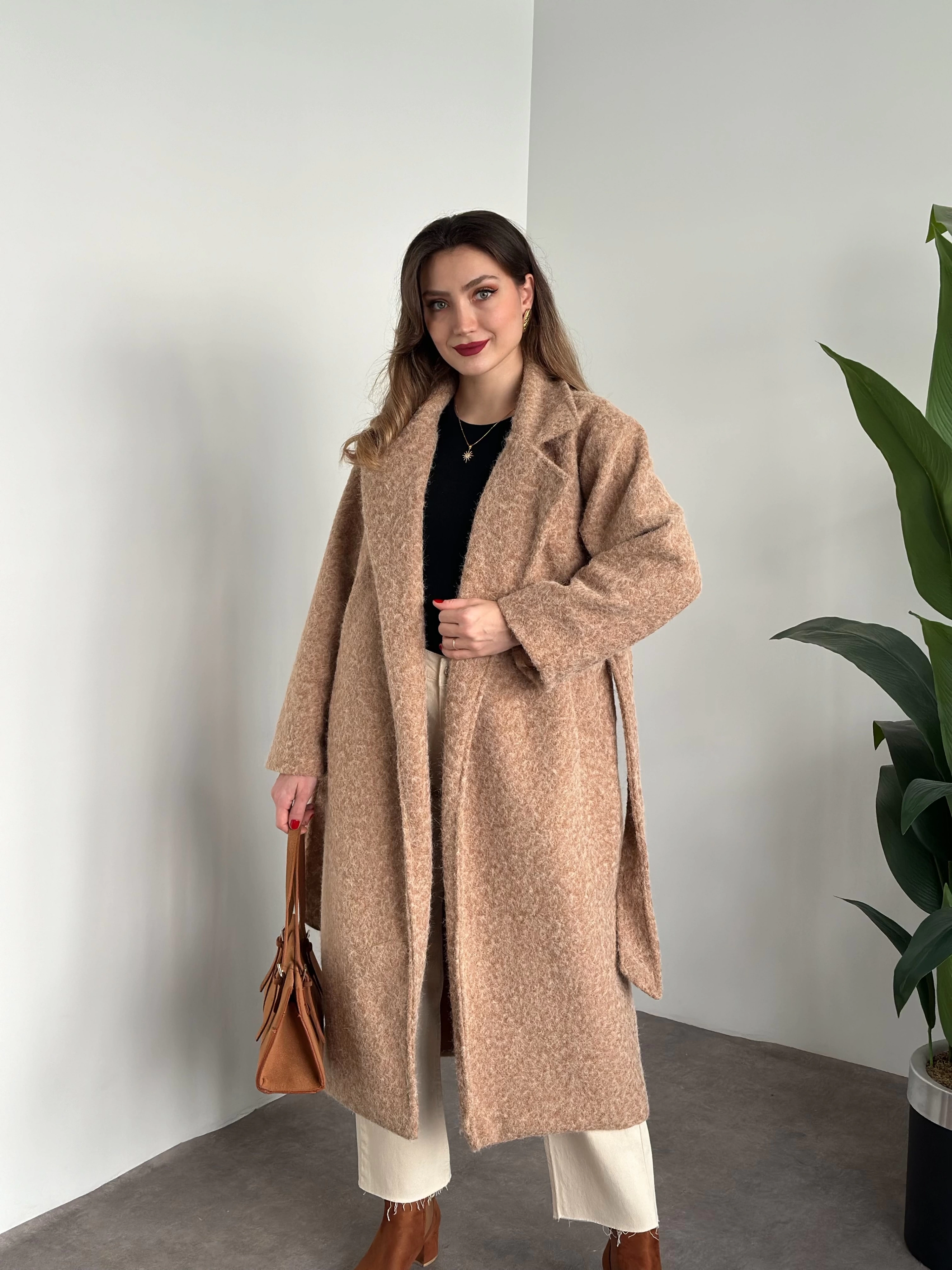 Yün saçaklı kaşe kumaş kemerli pinterest kaban camel