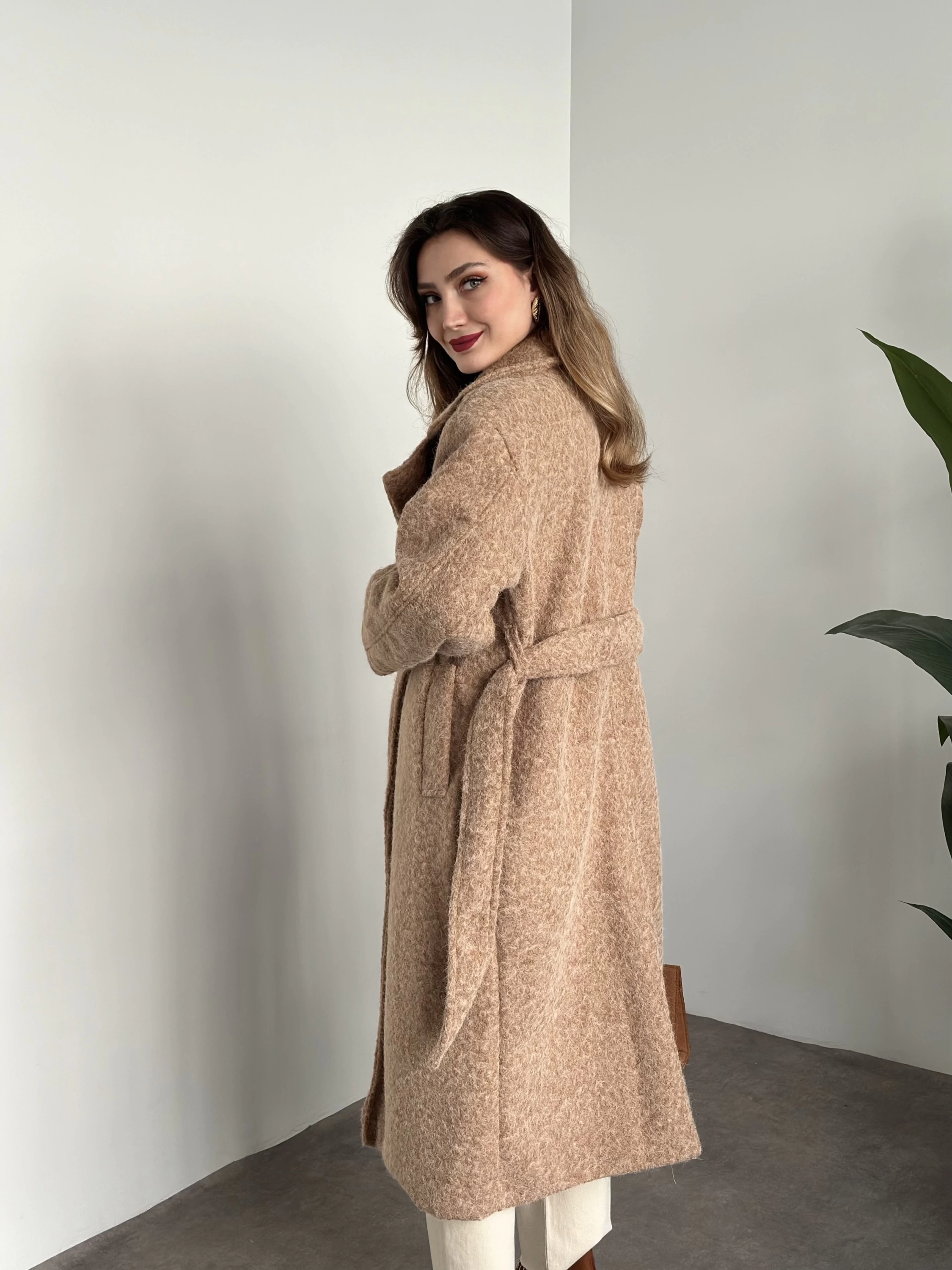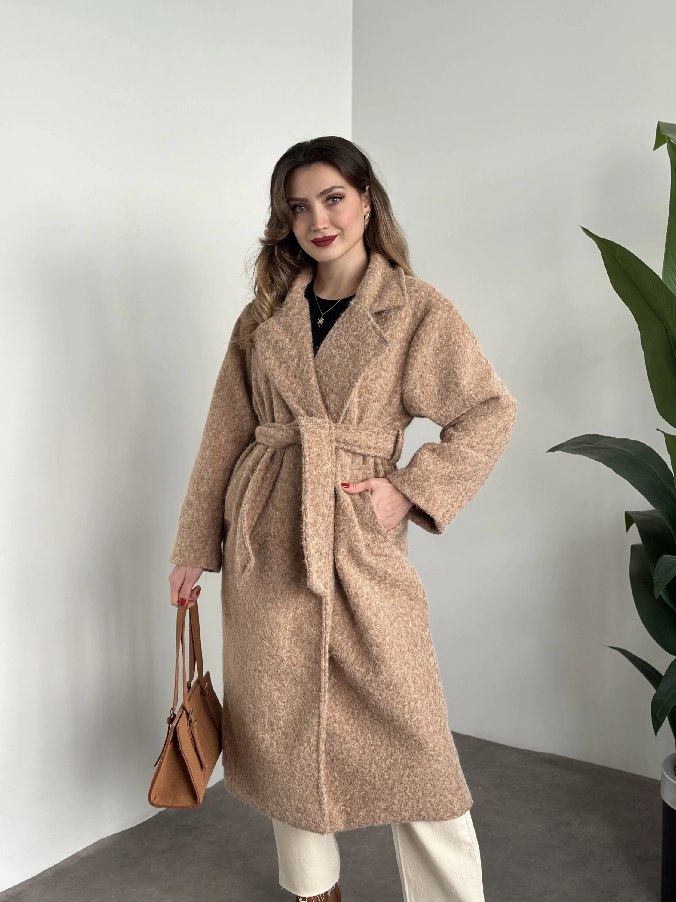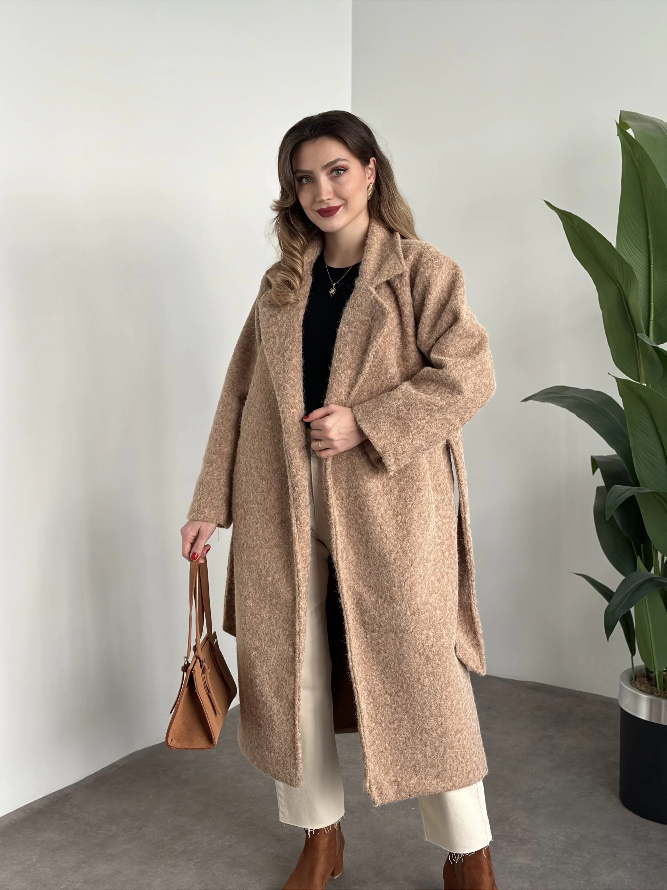Yün saçaklı kaşe kumaş kemerli pinterest kaban camel