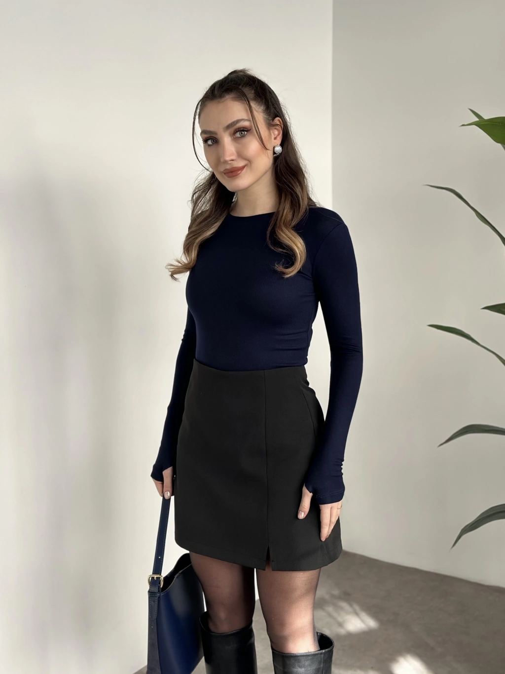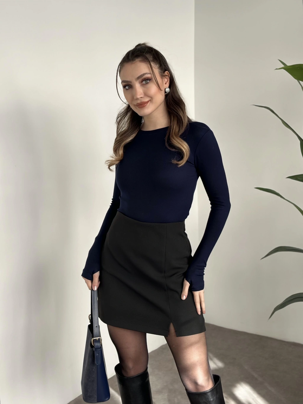 Zr parmak geçirmeli modal kumaş body lacivert
