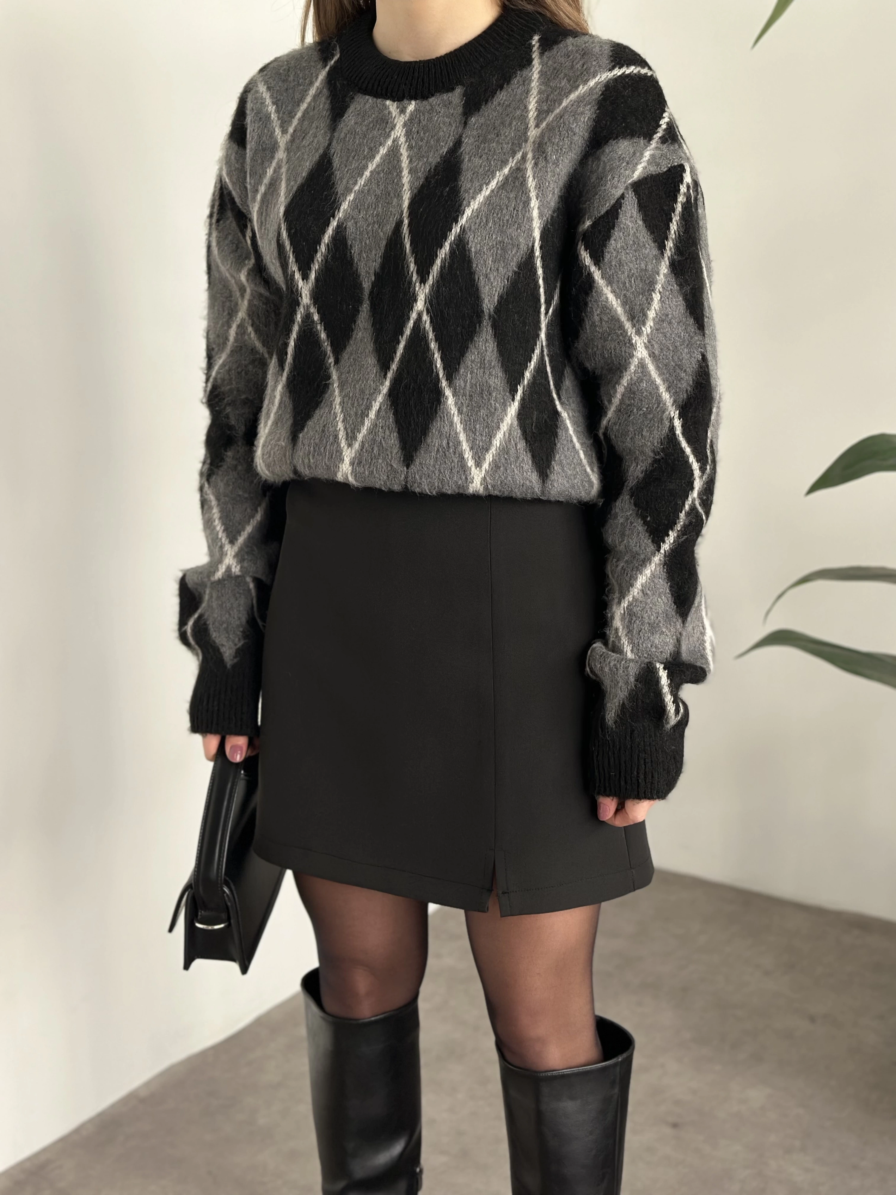 Oversize ara boy standart kaşe kaban antrasit